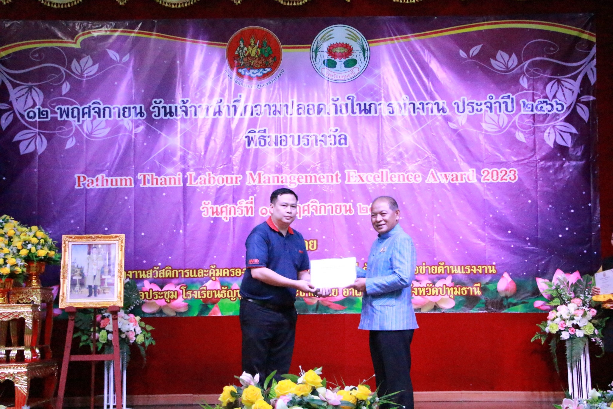 ด้วยกรมสวัสดิการและคุ้มครองแรงงานจังหวัดปทุมธานี จัดพิธีมอบรางวัลด้านความปลอดภัยฯ โดยท่านรองผู้ว่าราชการจังหวัดปทุมธานนี
